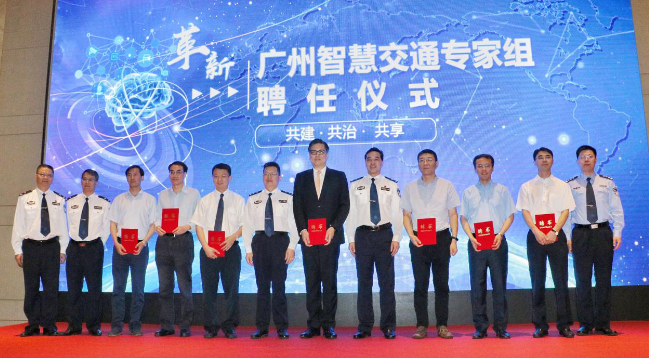 隨后迎來了論壇的高潮環節——廣州市公安局智慧交通特聘專家組名單公布并舉行了聘任儀式,公司兩大專家榜上有名,包括交通大腦研究院院長李德紘院士和智慧交通首席科學家余志教授,同時受聘的專家還包括公安部交通管理科學研究所劉東波副所長,同濟大學王雪松教授,東南大學王昊教授,密西根大學終身教授、滴滴出行副總裁劉向宏博士,廣州市交通規劃研究院景國勝院長等交通領域世界級的專家,其中李德紘院士擔任專家組組長。