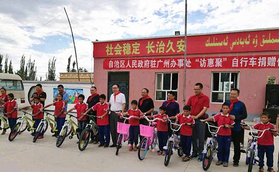 除了以科技的方式外,佳都科技還在教育、環(huán)保、文化、扶貧等很多領(lǐng)域積極參與援疆行動,全方位助力建設(shè)美麗新疆。據(jù)悉,近期在佳都科技的大力支持與配合下,新疆維吾爾自治區(qū)人民政府駐廣州辦事處在英阿瓦提鄉(xiāng)托普恰克(10)村舉行了一場簡單而隆重的“訪惠聚”自行車捐贈儀式,給該村小學(xué)和初中的孩子們送去了百輛自行車,為學(xué)生們拉近了家與學(xué)校的距離,也圓了百名學(xué)生的單車夢。