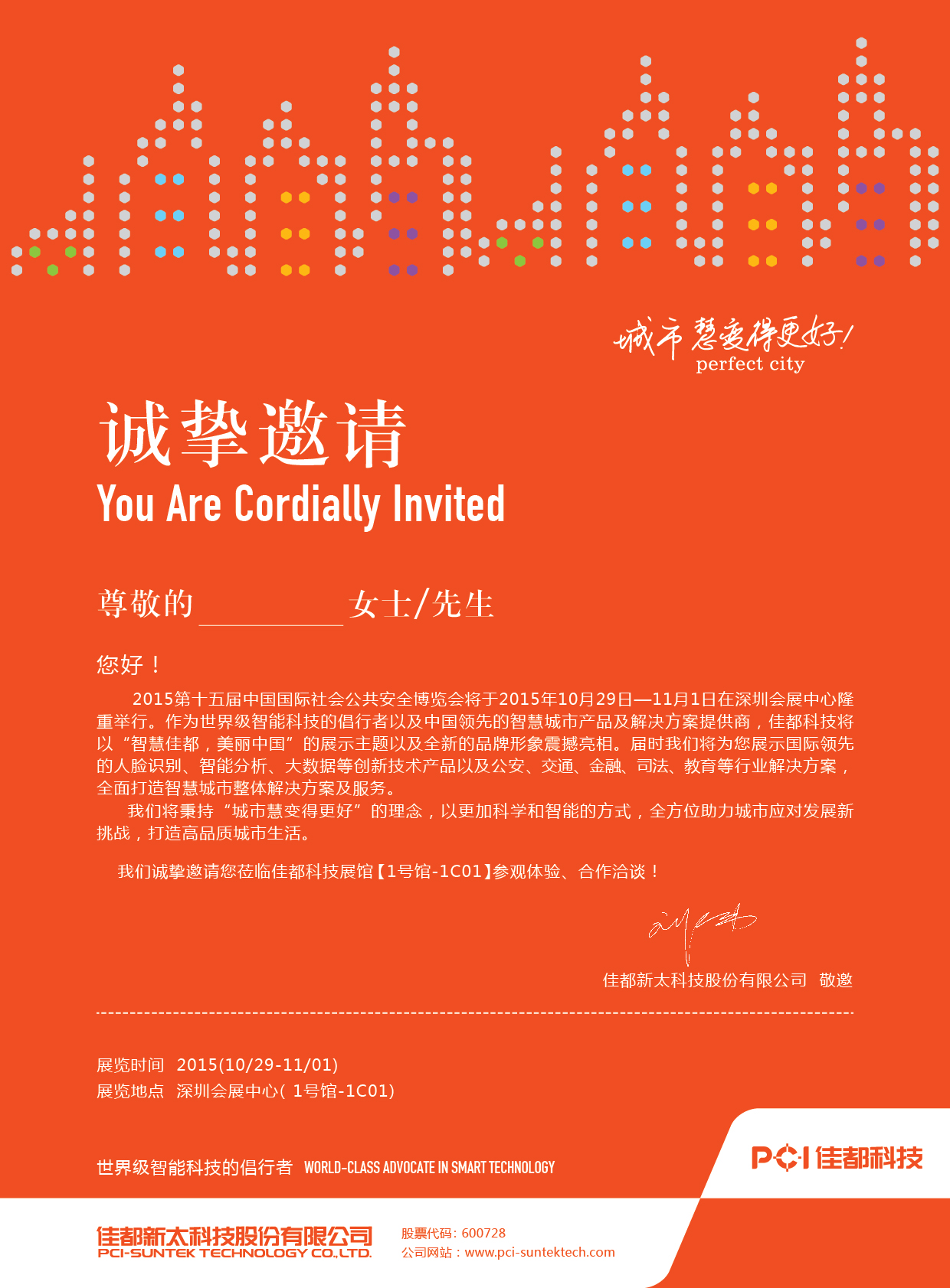 2015第十五屆中國(guó)國(guó)際社會(huì)公共安全博覽會(huì)將于2015年10月29日—11月1日在深圳會(huì)展中心隆重舉行。作為世界級(jí)智能科技的倡行者以及智慧城市產(chǎn)品及解決方案提供商,佳都科技將以“智慧佳都,美麗中國(guó)”的展示主題以及全新的品牌形象震撼亮相。屆時(shí)我們將為您展示先進(jìn)的人臉識(shí)別、智能分析、大數(shù)據(jù)等創(chuàng)新技術(shù)產(chǎn)品以及公安、交通、金融、司法、教育等行業(yè)解決方案,全面打造智慧城市整體解決方案及服務(wù)。