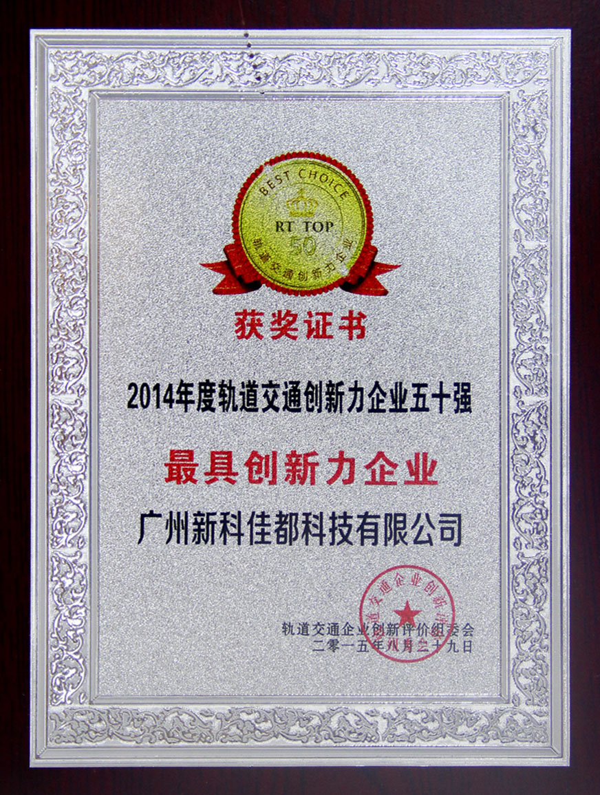 2015年8月29日,「RT TOP 50」2014軌道交通創新力企業50強評選活動頒獎盛典在上海淳大萬麗酒店隆重開幕,佳都科技以綜合實力和產品創新力脫穎而出榮獲創新企業50強稱號。另外,其自主研發的大型綜合監控系統軟件平臺(MICS)還被評為2014年度軌道交通創新產品獎。