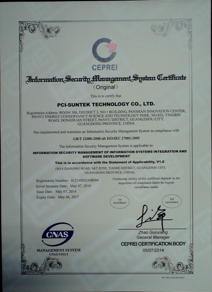 2014年3~4月,佳都科技順利通過了國際標準及權威的ISO27001信息安全認證體系和ISO20000信息技術服務管理體系,取得了廣州賽寶認證中心頒發的ISO/IEC 27001:2005信息安全管理體系認證證書和ISO/IEC 20000-1:2011信息技術服務管理體系認證證書。